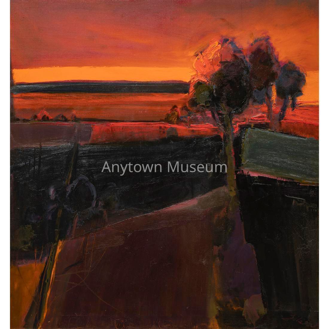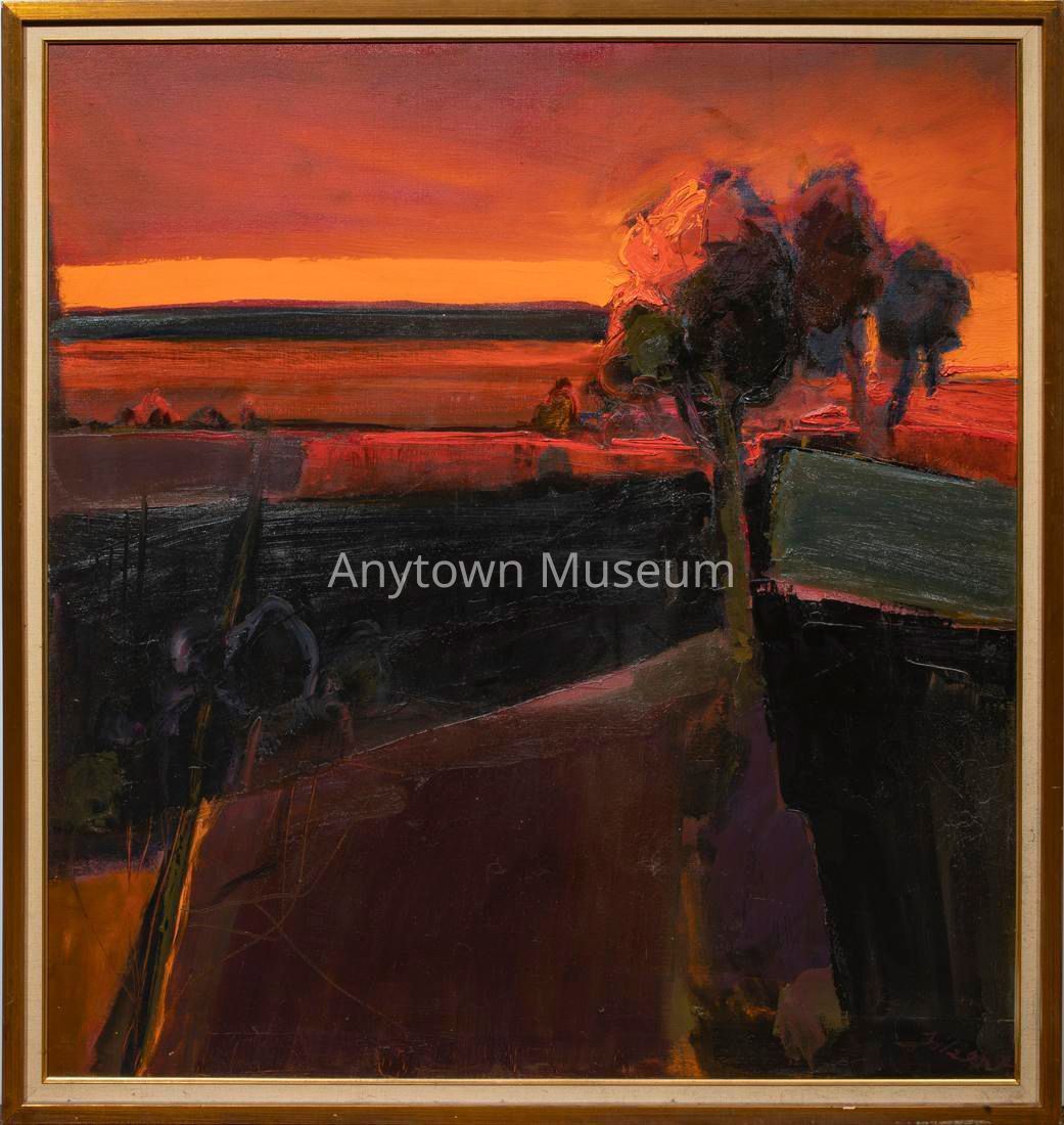 Landscape paining in the Bay Area Figurative style depicting the Oakland Hills.