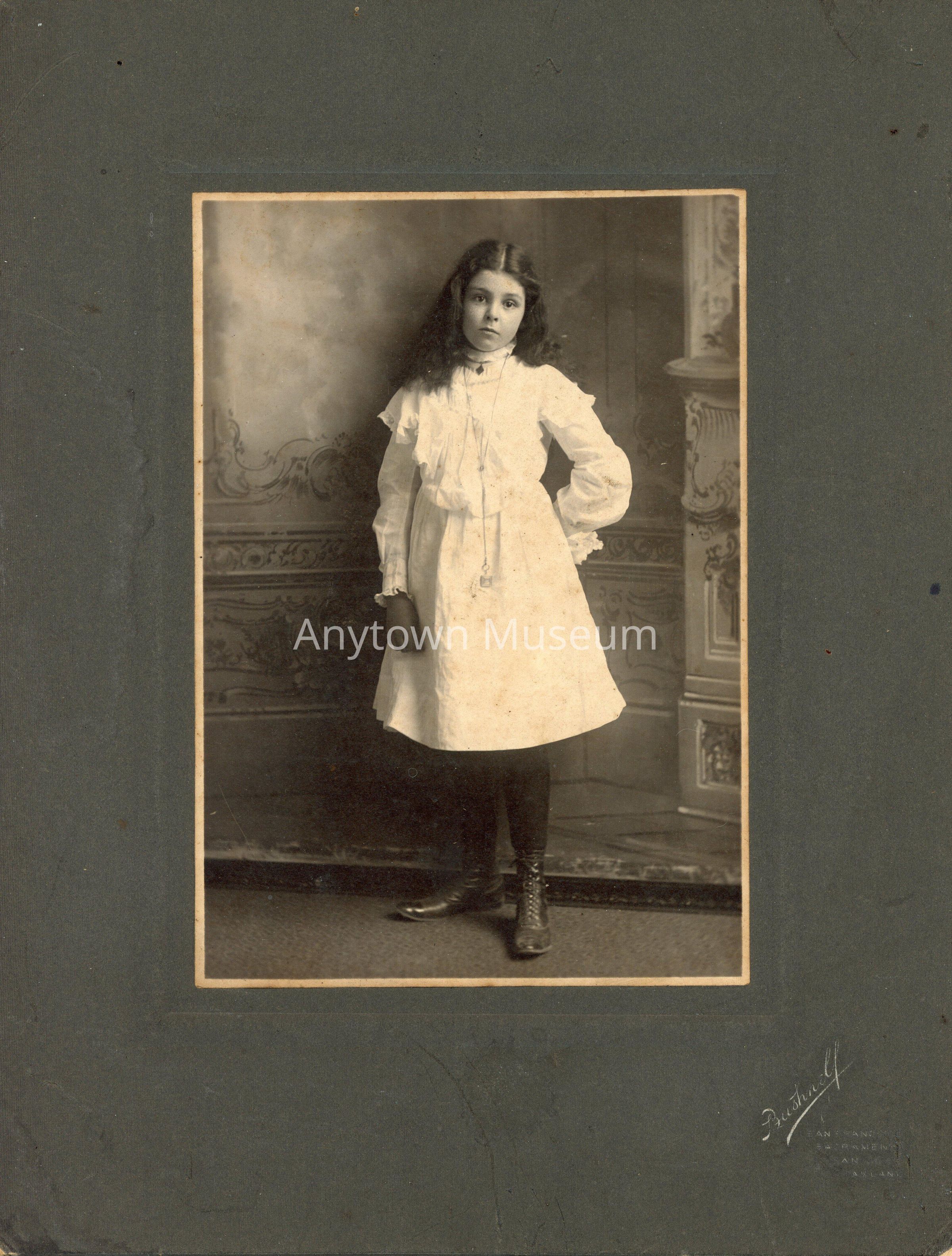 Studio portrait of Sophia Phares at approx. 9 years of age, circa 1899