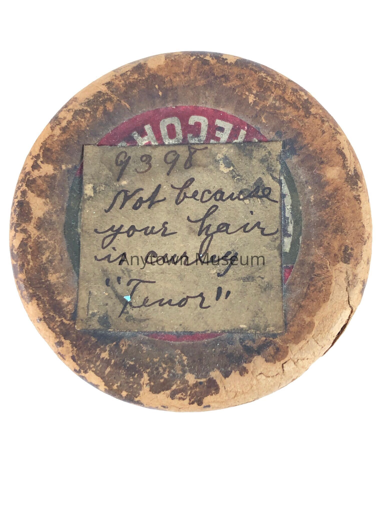Wax cylinder recording of "Not Because your Hair is Curly" in its original container